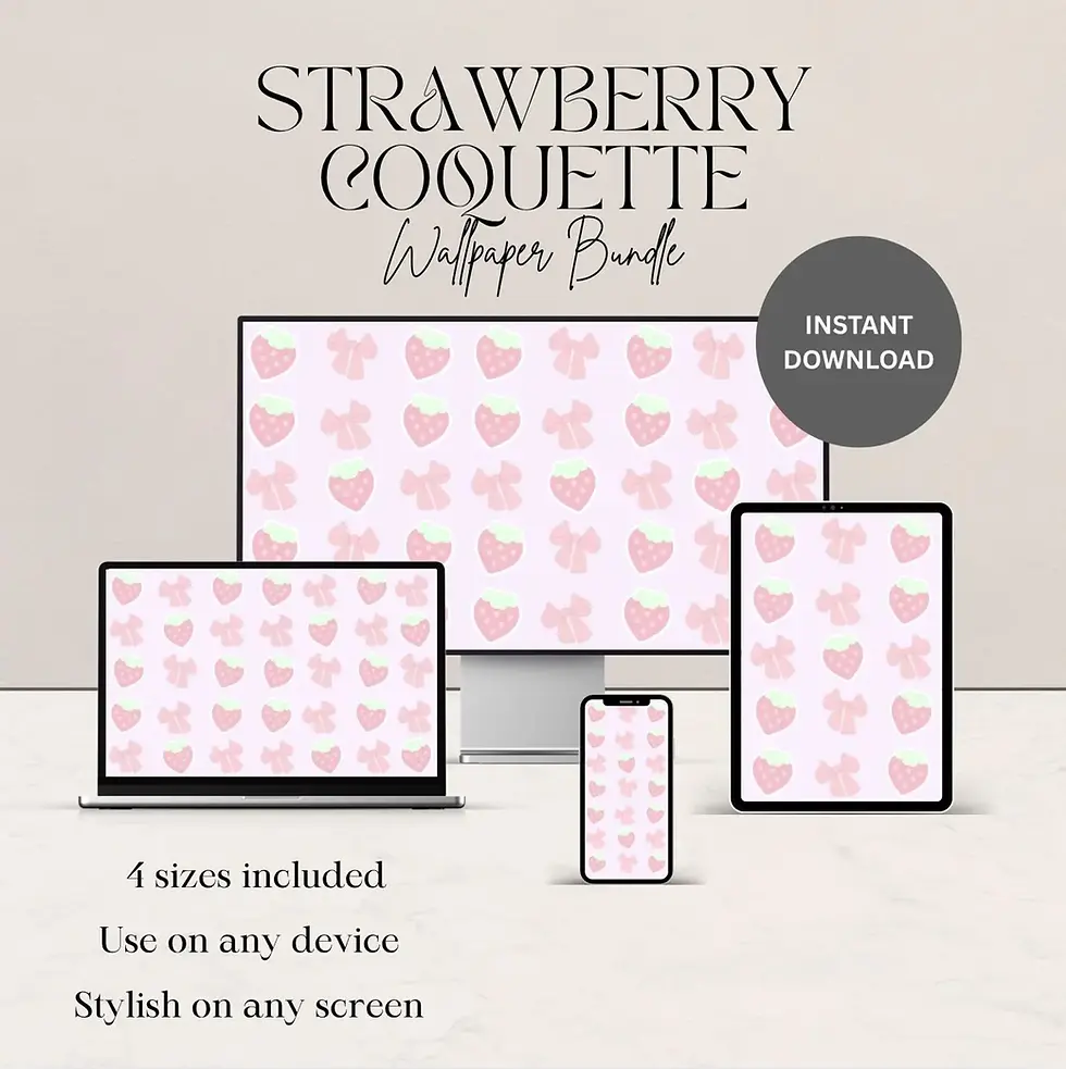 Strawberry Coquette Wallpaper Bundle - Instant Download